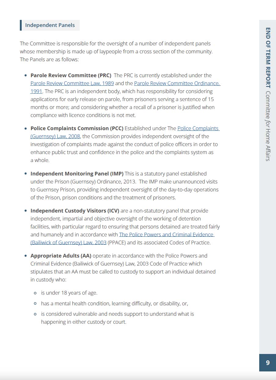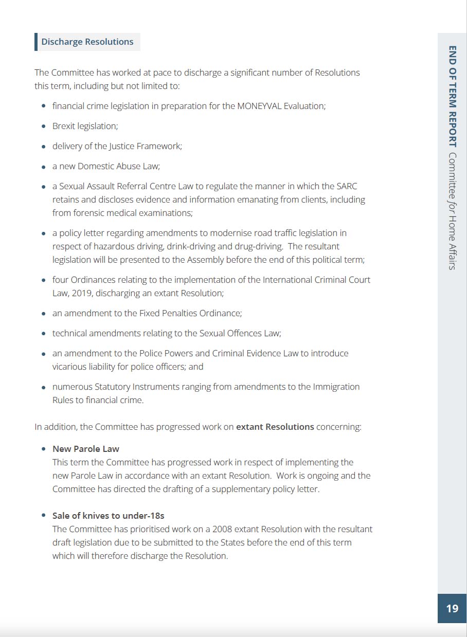 Policy & Resources | Economic Development | Education, Sport & Culture | Employment and Social Security | Environment & Infrastructure | Health & Social Care | Development & Planning Authority | States Assembly & Constitution Committee | States Trading Supervisory Board